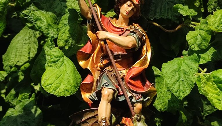 Heiliger Georg, treuer Beschützer, der du mutig den Drachen besiegt hast, bitte steh uns bei auf unseren Pfaden.